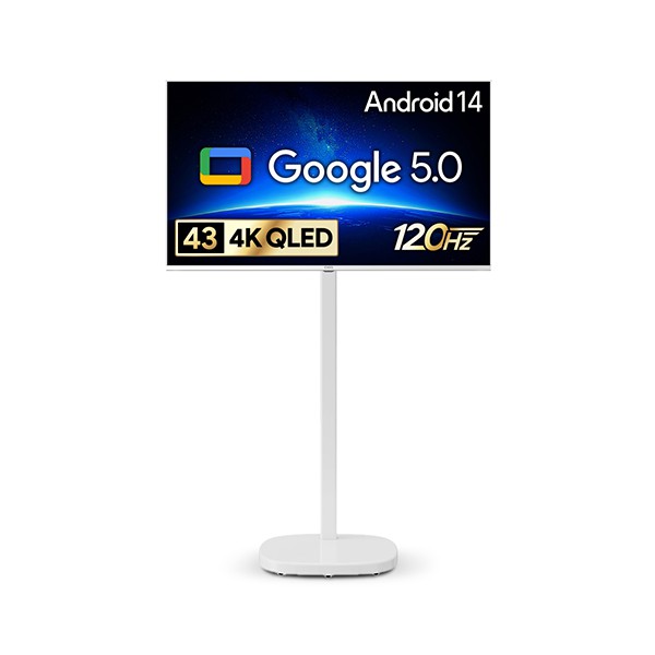 [더함]CHIQ 구글 5.0 OS_안드로이드 14 QLED 43인치 (화이트)+이동형스탠